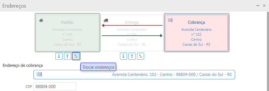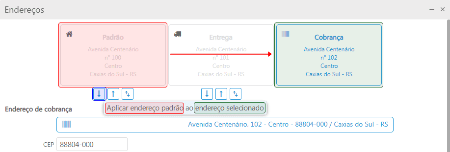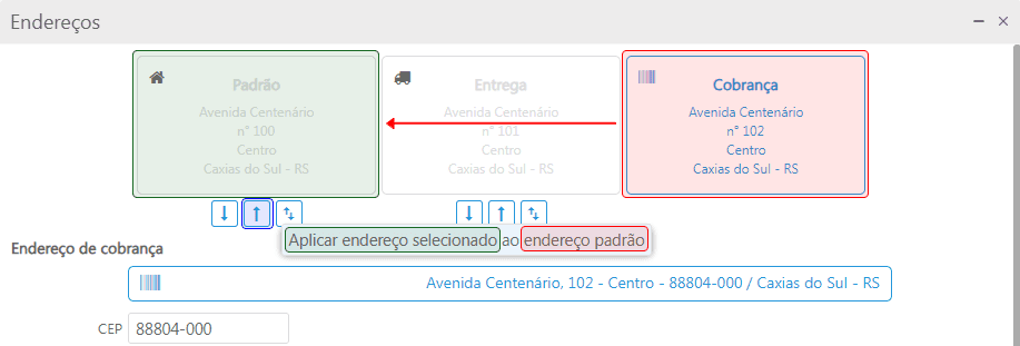 Aplicar endereço selecionado ao endereço: clicando neste ícone será aplicado o endereço selecionado pelo endereço do quadro;