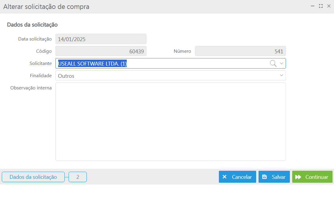 Alterar solicitação de compra