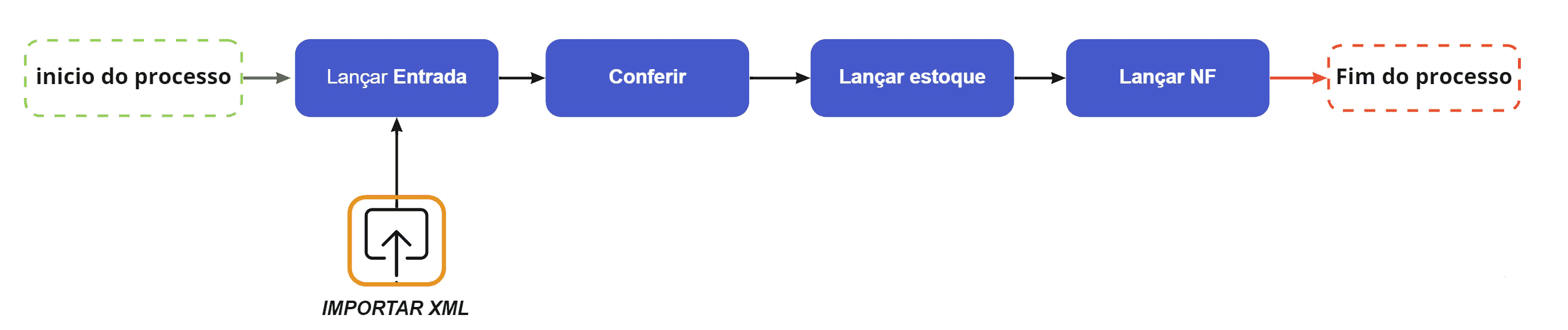 A entrada pode ser iniciada manualmente ou automaticamente, em decorrência de outro evento que dispare o processo. Por exemplo, ao receber um XML, o sistema gera uma operação de entrada. Em resumo, o processo de entrada é destinado ao registro de notas fiscais no sistema.