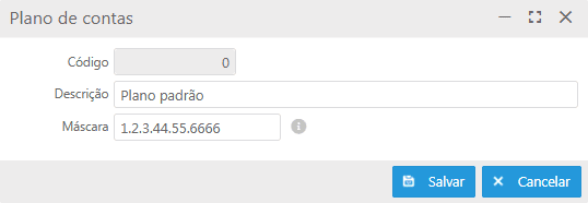 Máscara: define o padrão de estrutura utilizado na criação das contas vinculadas a esse plano.