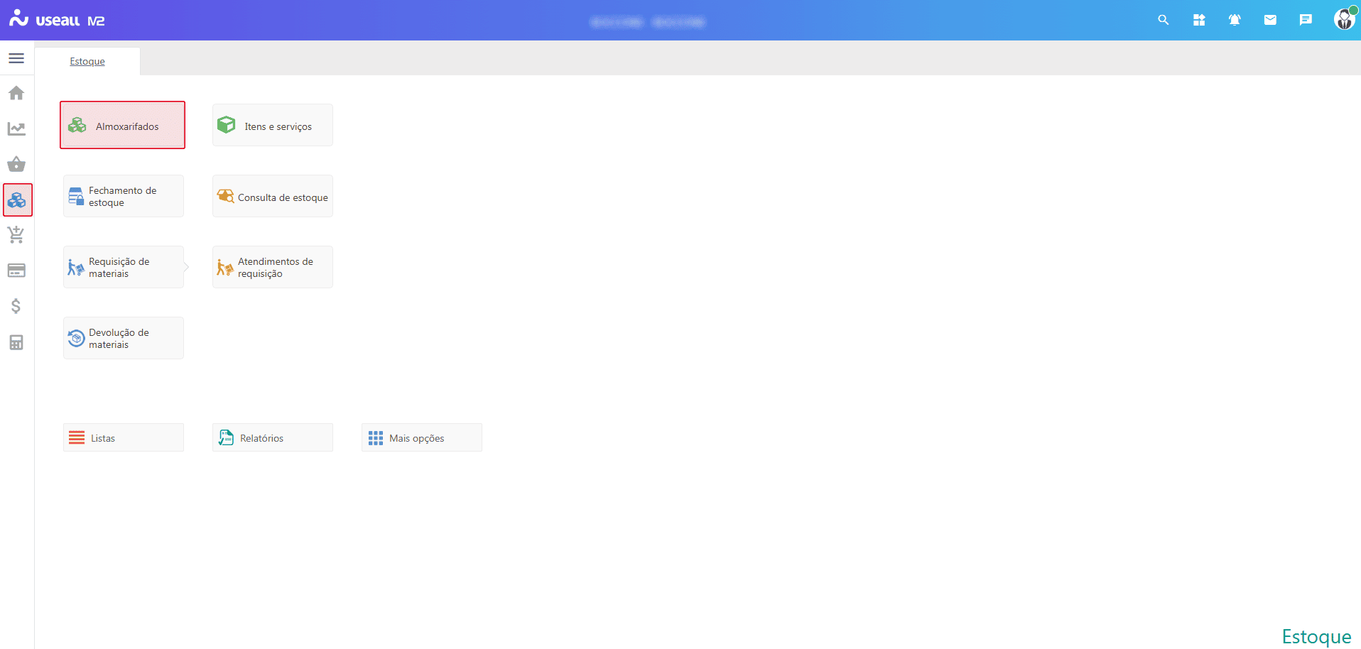 Acesso em: Módulo Estoque > Almoxarifados.