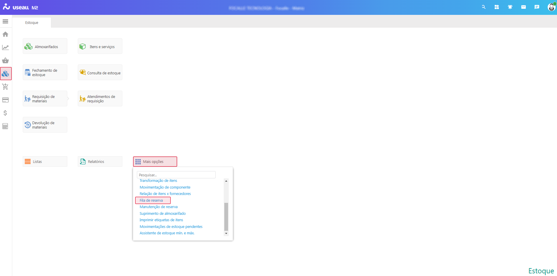 Acesso em: Módulo Estoque > Mais opções > Fila de reserva.