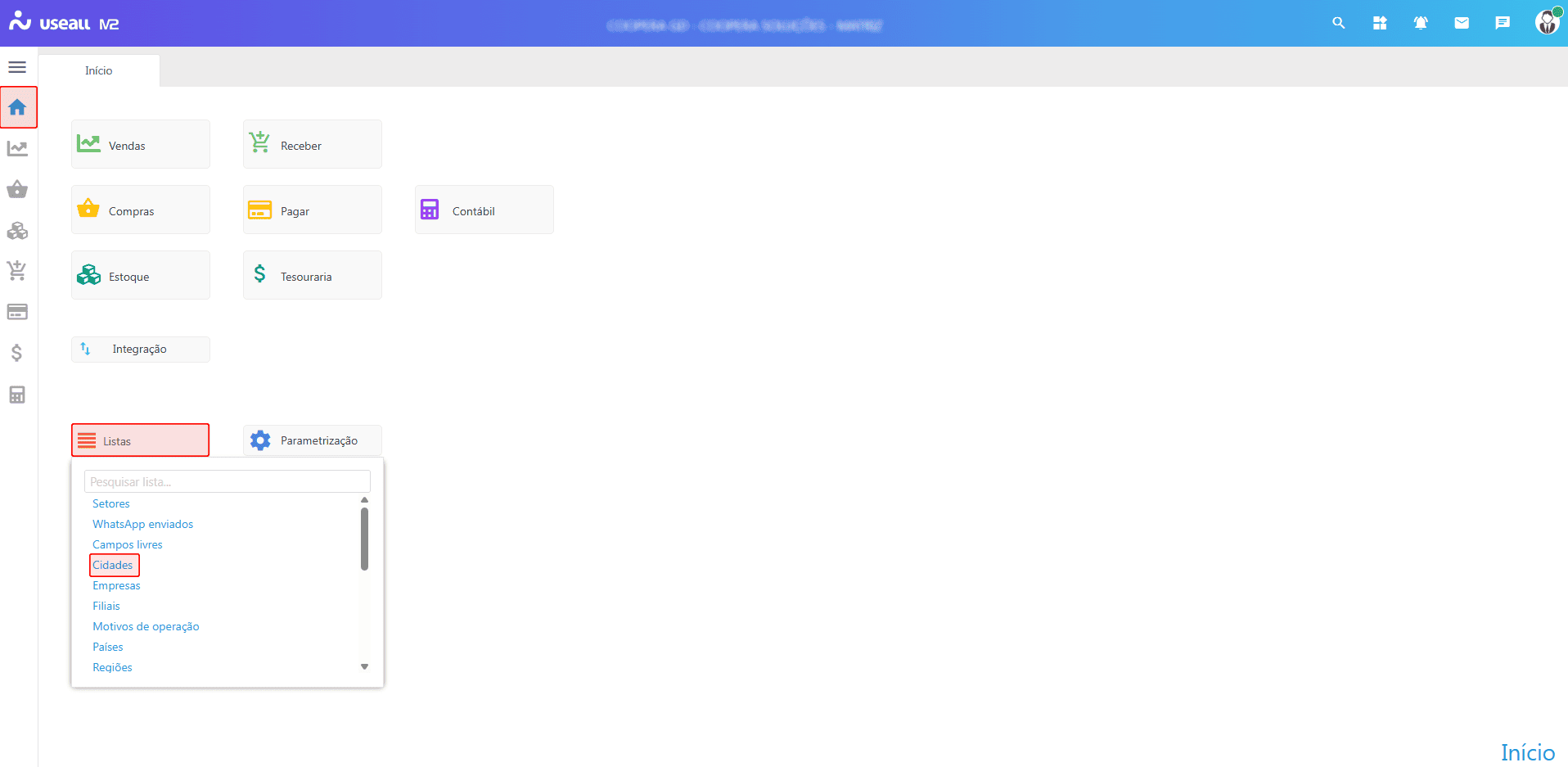 O acesso está disponível no módulo Início > Listas > Cidades.