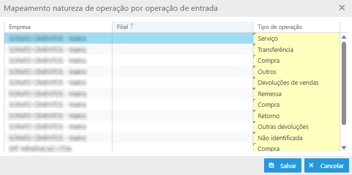 Dessa forma, quando for realizada uma importação de XML, o sistema identifica, a partir dessa configuração, qual tipo de operação corresponde à natureza da operação informada no documento.
