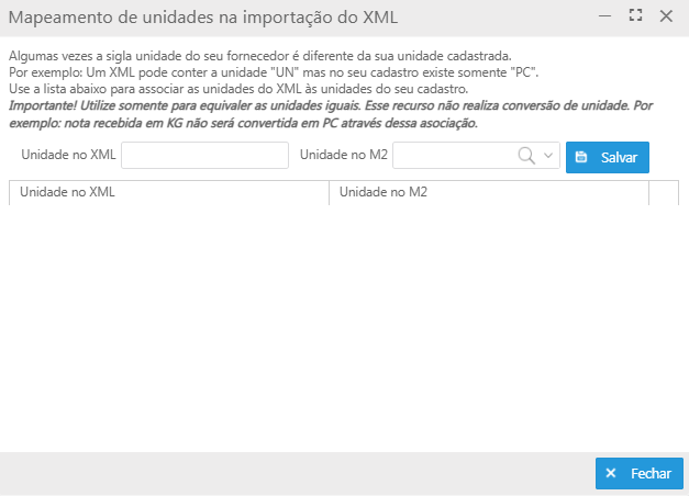 Mapeamento de unidades na importação do XML