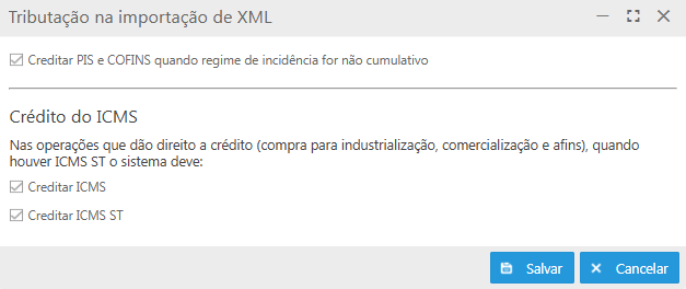 Tributação na importação de XML (Importador 2.0)
