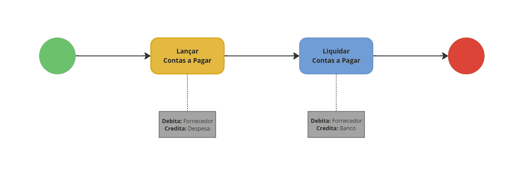 Os modelos de lançamentos contábeis são criados no cadastro de regras contábeis e, posteriormente, vinculados aos tipos de contas a pagar.