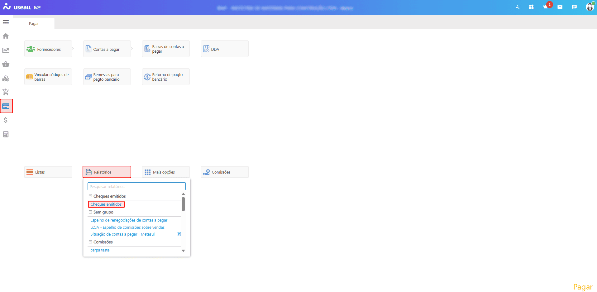 Acesso disponível em Pagar > Relatórios > Cheques emitidos.