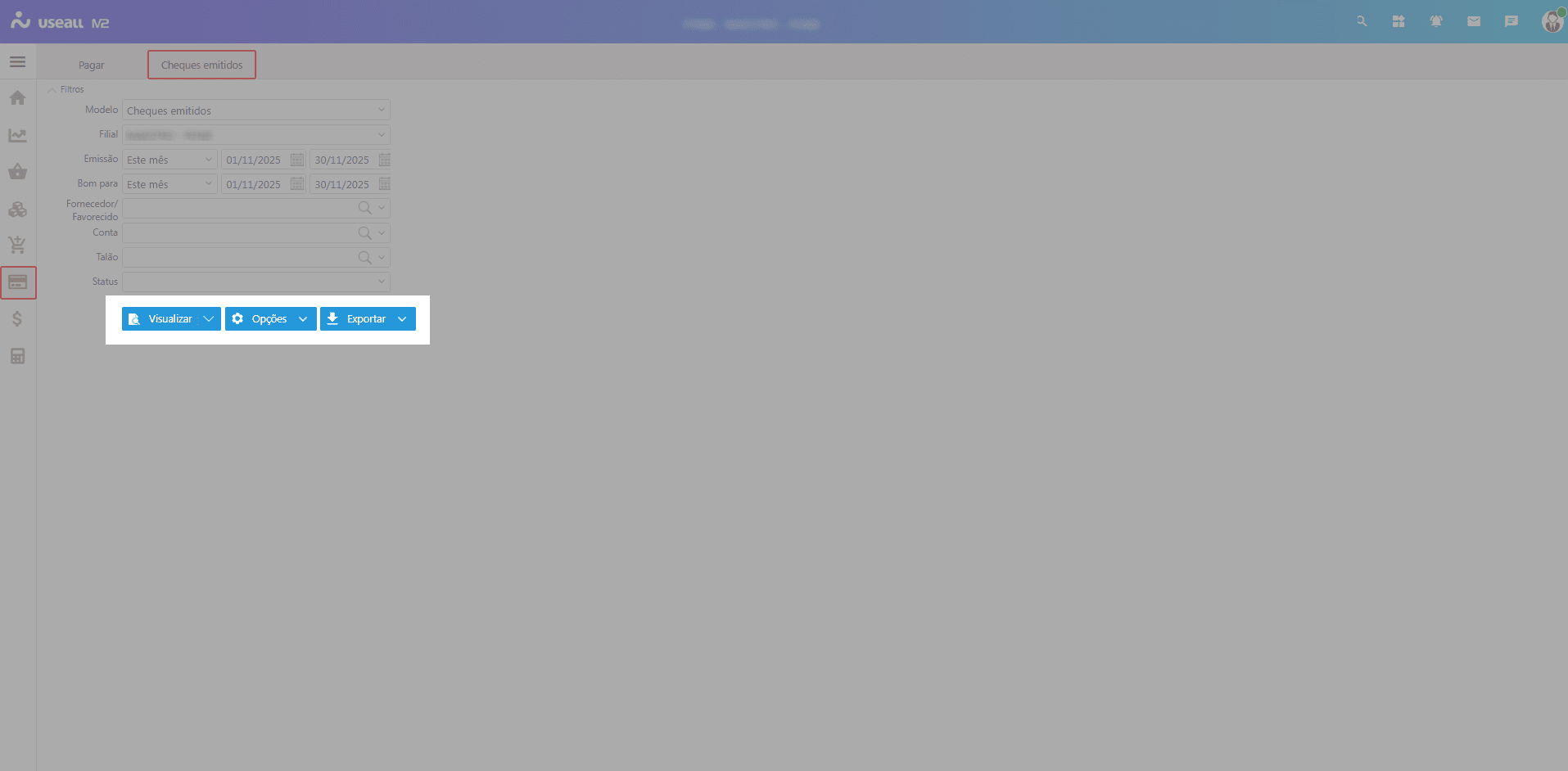 Talão: permite filtrar pelo talão de cheques utilizado;