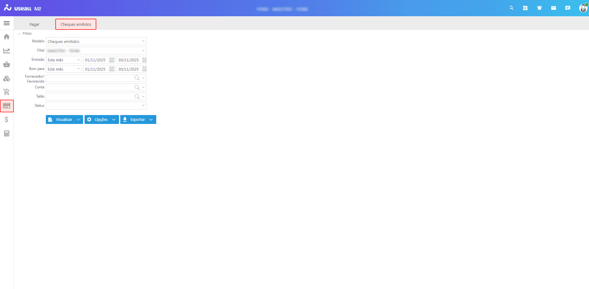 Modelo: disponibilizado com a opção Cheques emitidos;