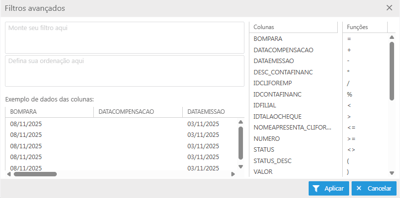 Emissão: filtra os cheques pela data de emissão;