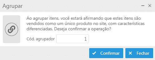 , os itens serão agrupados e abrirá uma tela para informar um código identificador do agrupamento, este código deve ser numérico;