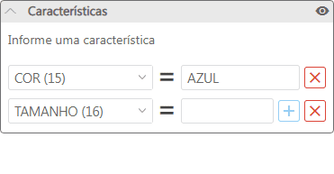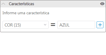 Neste quadro serão apresentadas as informações de características, podendo adicionar características ao item selecionado.