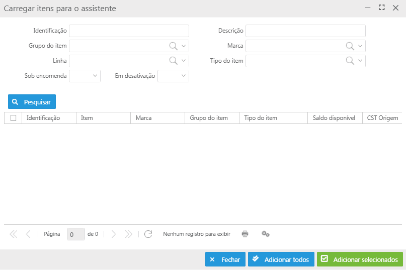 Adicionar todos: irá adicionar todos os itens apresentados, independente de estar selecionado ou não;