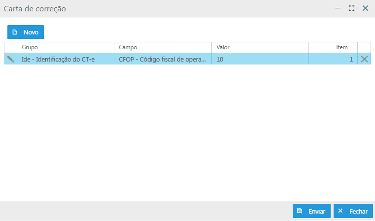 Solicitar envio de carta de correção: exibe a tela Carta de correção, permitindo registrar ajustes permitidos pela legislação.