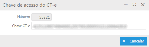 Chave de acesso: exibe a chave de acesso do CT-e.