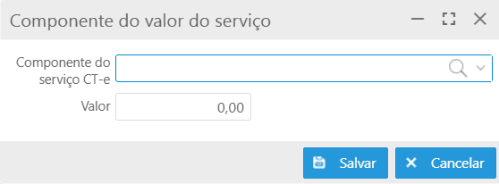 Botão Novo: ao acionar, é exibida a tela Componente do valor do serviço, contendo os campos:
