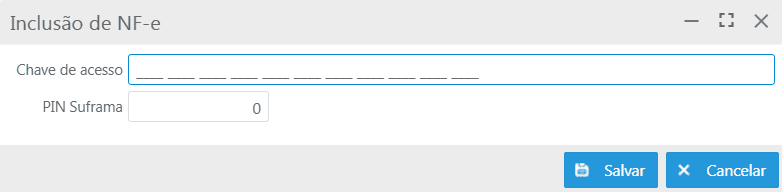 Botão Novo: permite incluir uma NF-e manualmente. Ao acionar este botão, a tela Inclusão de NF-e será exibida, contendo os campos: