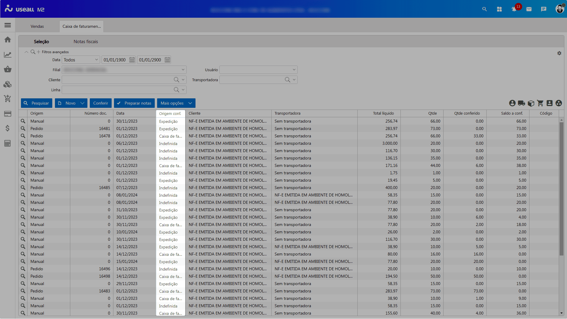 Na listagem da Caixa de faturamento é exibida a Origem da conferência, indicando onde a conferência está sendo realizada, sendo:
