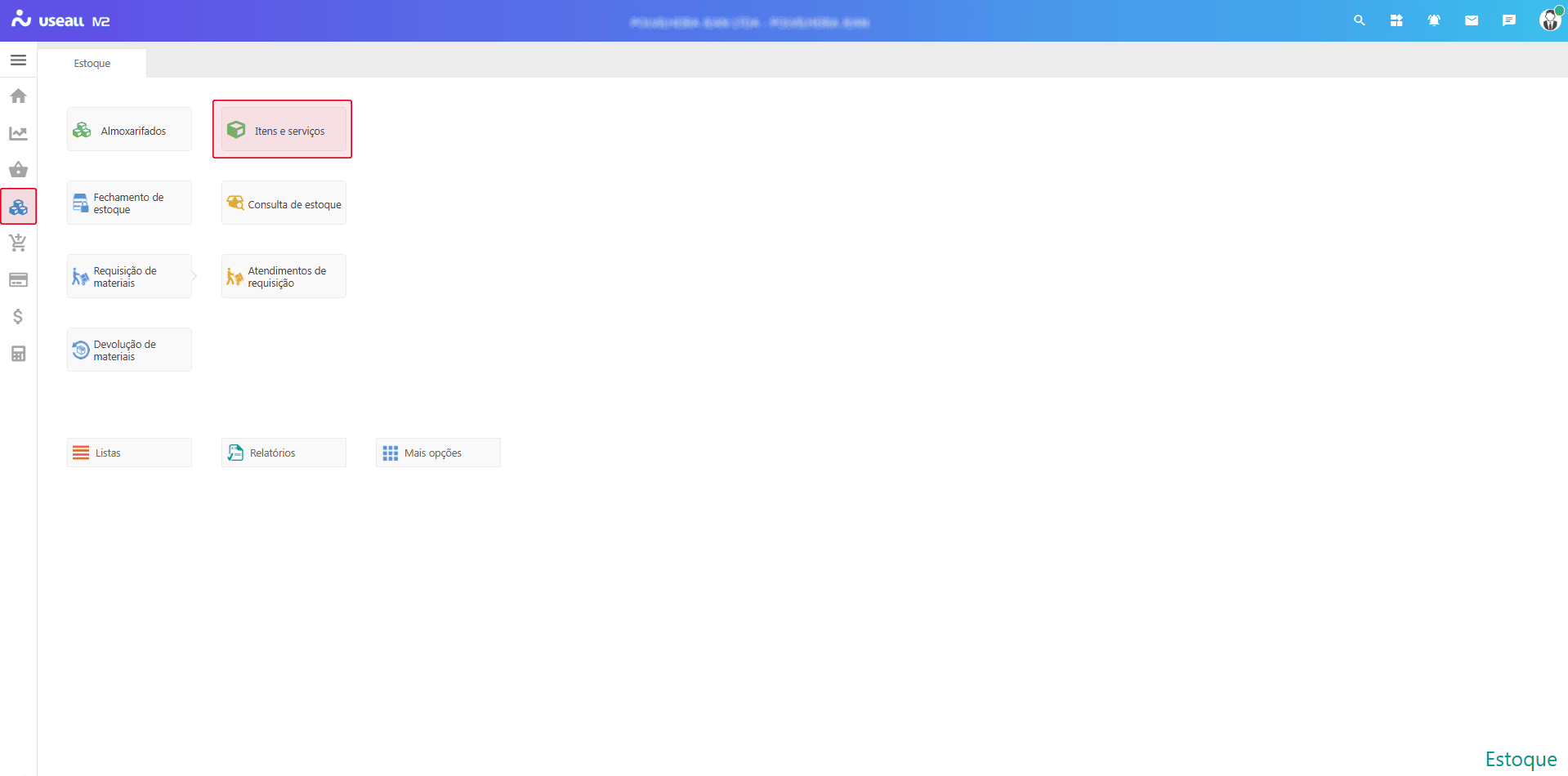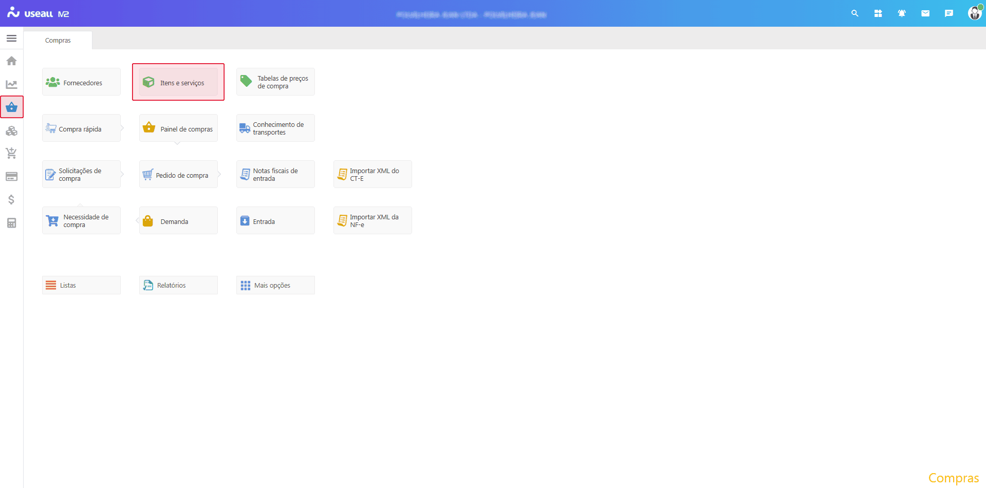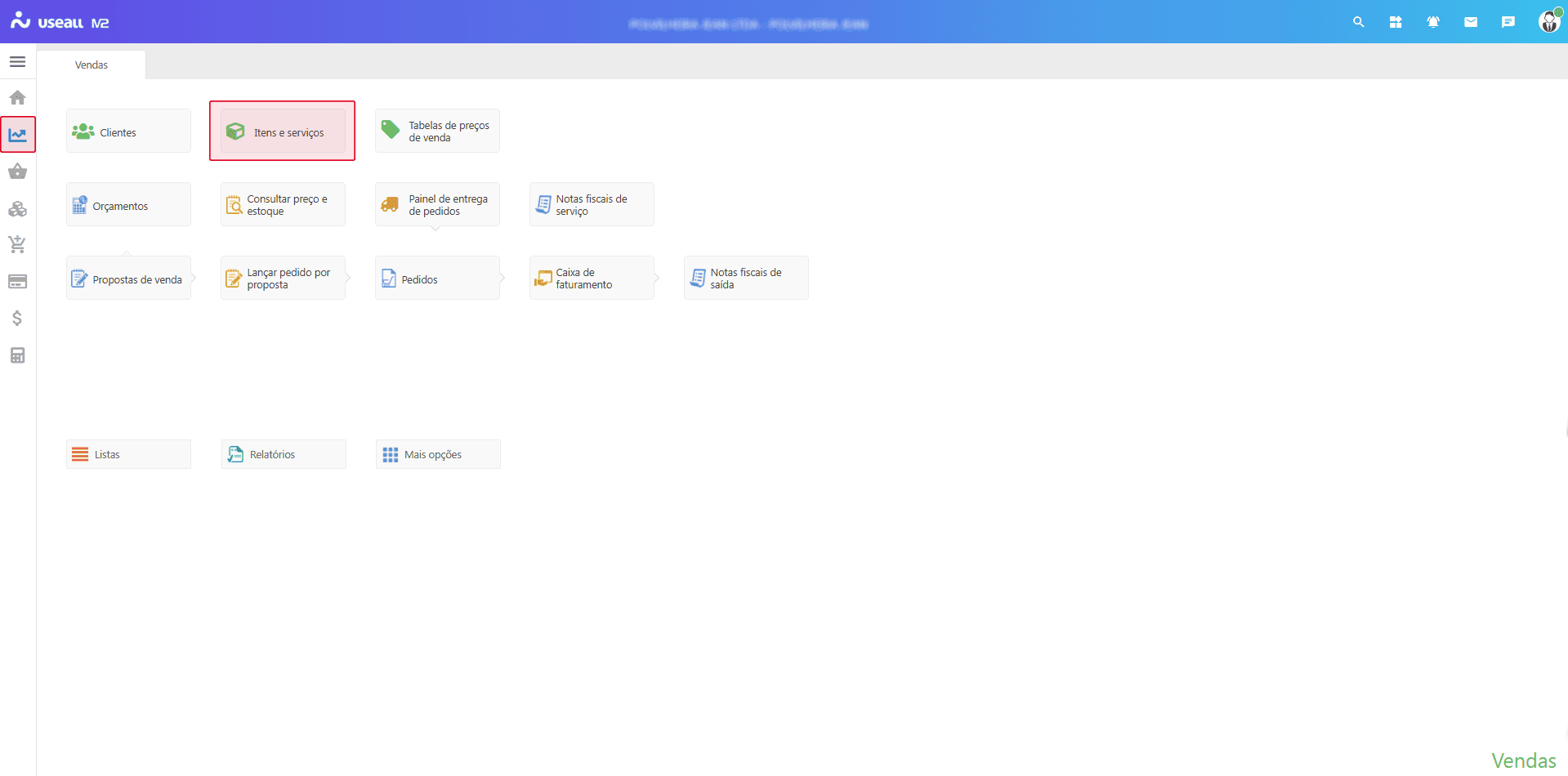Acesso pode ser através de três módulos: Vendas, Compras ou Estoque, acessar a funcionalidade de Itens e serviços disponível nos módulos.