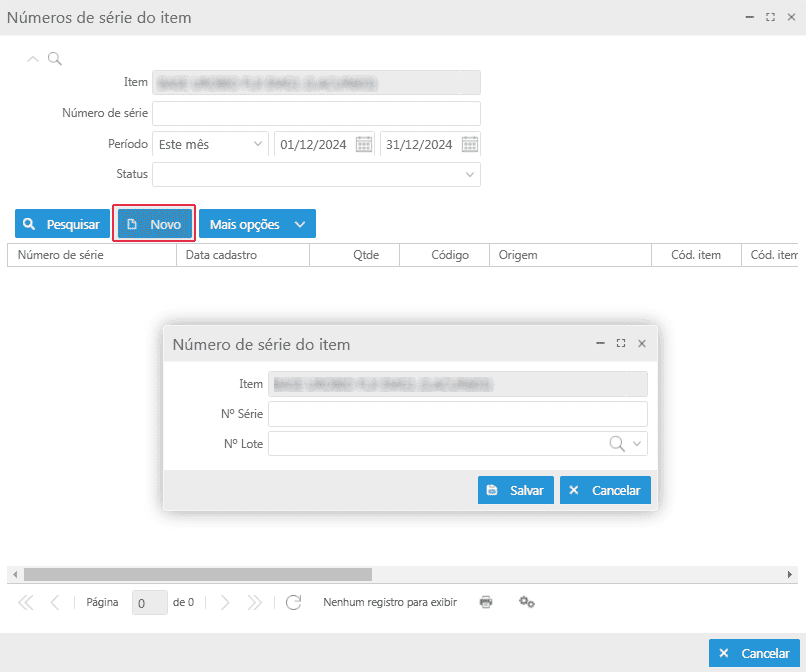 - Primeiro deve-se realizar o cadastro do número de série clicando no botão Novo;