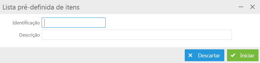 Após deve-se clicar no botão Iniciar, onde o sistema exibirá a tela para inserção dos itens que farão parte da lista de itens.