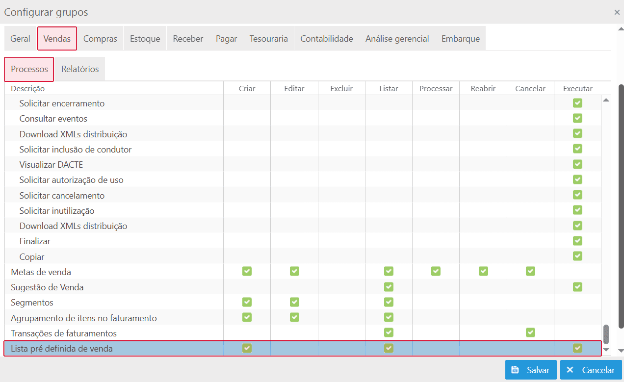 O processo Lista pré-definida de itens visa a facilidade de inserir uma lista de itens, com quantidades informadas, dentro de um pedido e/ou proposta de venda, facilitando a inserção de itens.