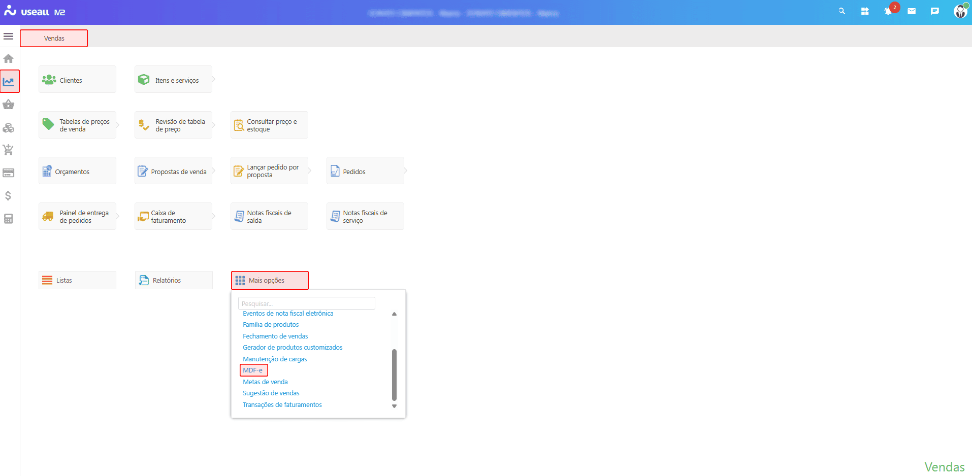 Notas fiscais: ao selecionar essa opção, o sistema exibirá as notas fiscais vinculadas ao MDF-e;