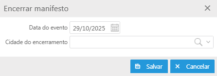 Solicitar encerramento: ao selecionar essa opção, o sistema permitirá realizar o encerramento do MDF-e, informando o ponto final do percurso;