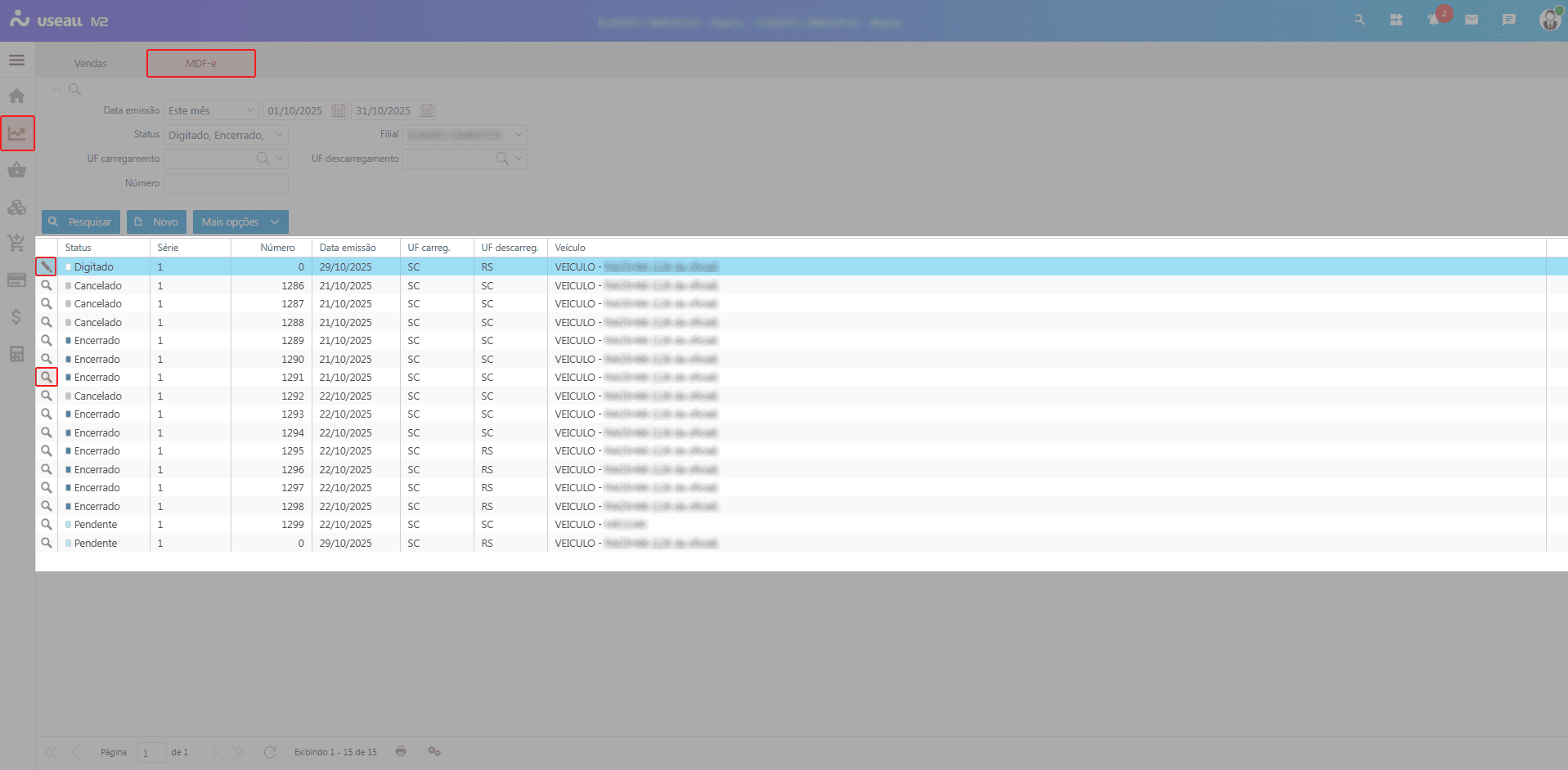 Veículos: ao selecionar essa opção, serão exibidos os veículos vinculados ao manifesto.