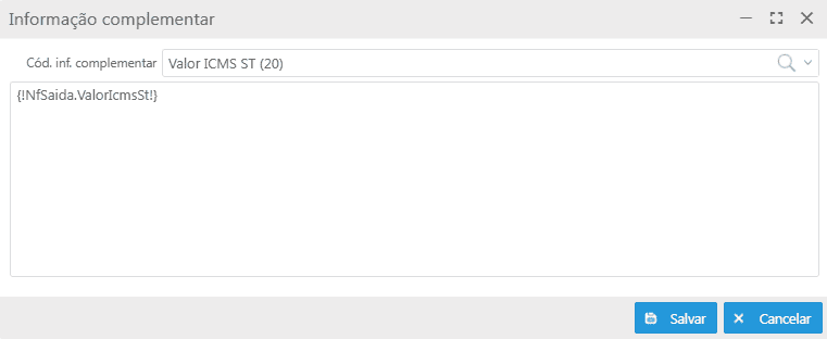 Botão novo: ao clicar neste botão, a tela Informação complementar será exibida, permitindo incluir observações adicionais relacionadas ao transporte.