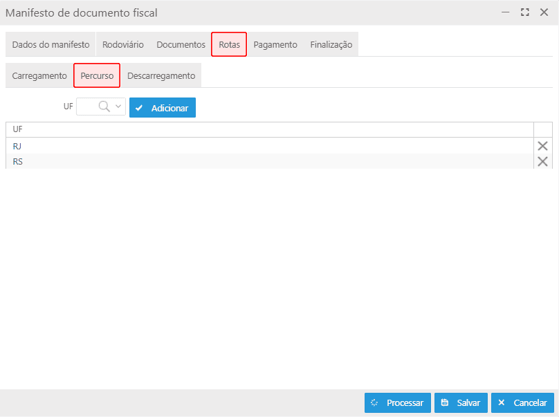 A ordem de inclusão das UFs deve corresponder à sequência real do percurso.