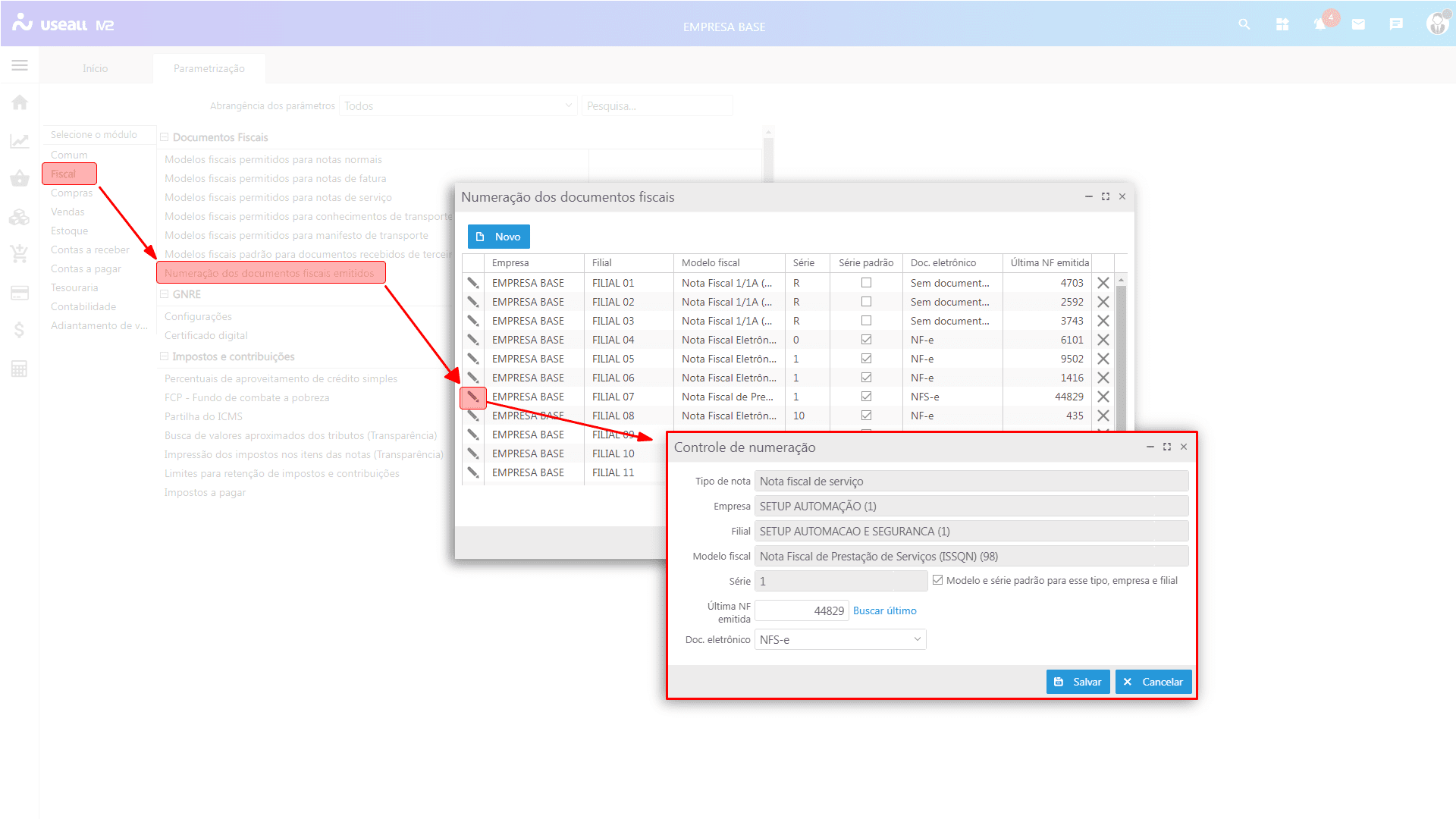 Nesta parametrização é realizado o controle de numeração da emissão de NFS-e.