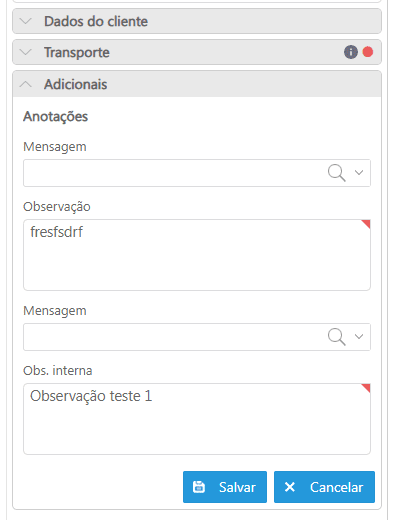 - Observações: pode-se alterar as informações dos campos Observação e Obs. interna;