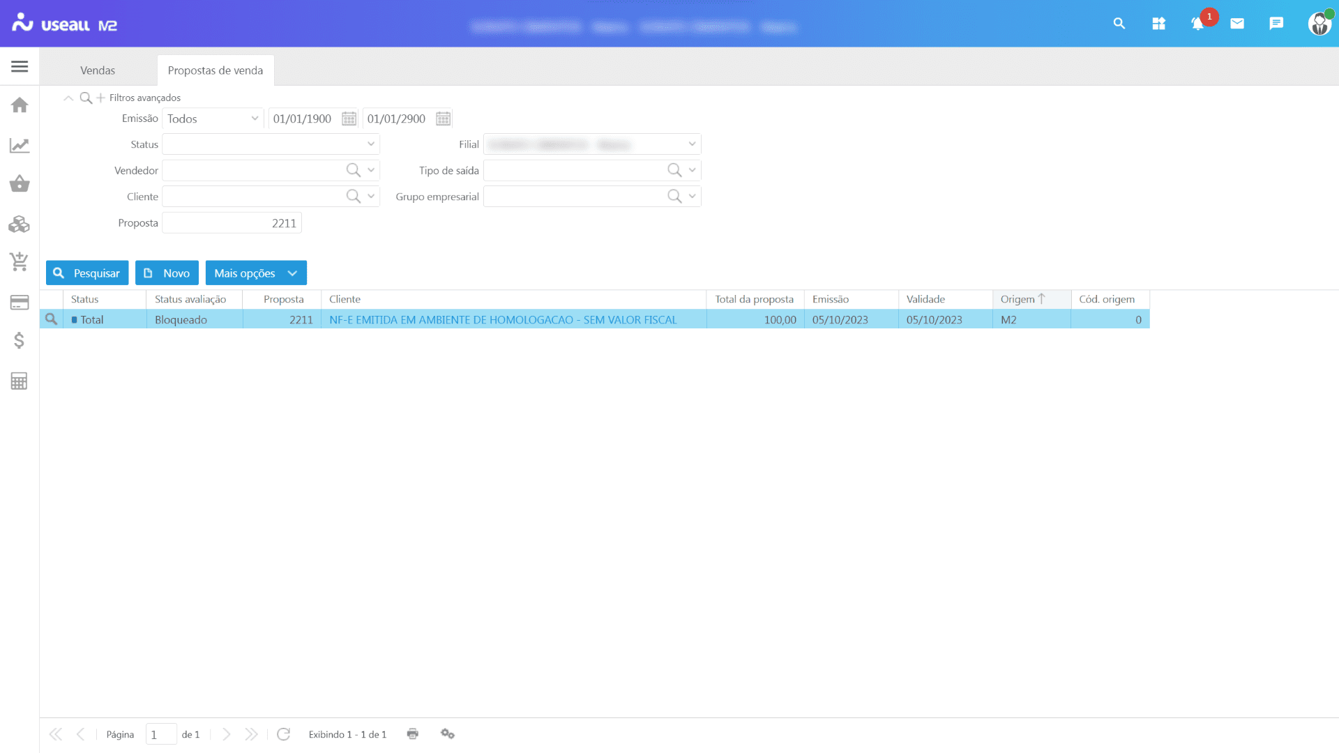 Acesso em: Vendas > Proposta de venda