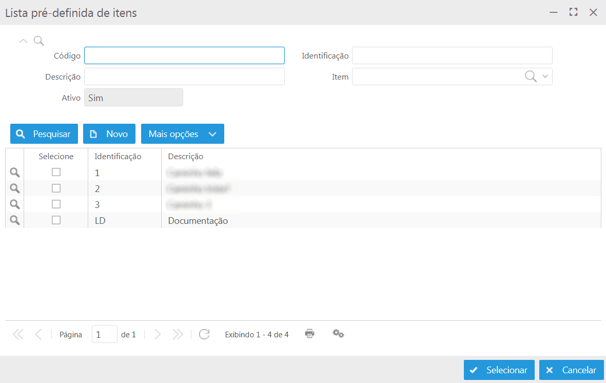 Ao clicar no ícone abrirá a tela do cadastro do item.